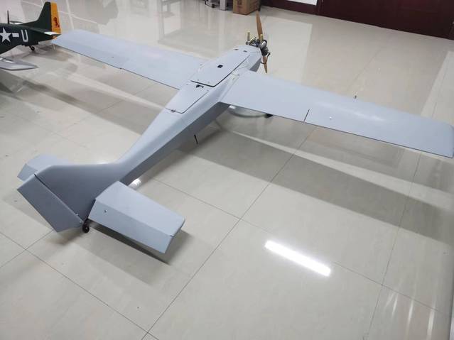 固定翼无人机,主要由机体结构、起降系统、燃油供给系统、发动机、航电系统等子系统组成,可进行固定翼飞行器总体设计、结构设计、部件以及各子系统拆装等。飞行器采用固定翼,气动外形设计经过气动计算和试验验证,机翼升阻比高。机体结构采用先进复合材料制造,副翼、升降舵表面无缝连接,机身结构清晰可见,结构耐磨、耐腐蚀、不易损坏。油箱采用高强度凯夫拉和防腐蚀软体油箱组成,结构多样化,飞行时间长。起降方式为滑跑起降,采用三点式起落架。主轮胎是可拆解结构,由轮毂和轮胎皮组成。轮胎可充气使用。采用液体燃料为发动机提供能量,发动机工作稳定可靠。