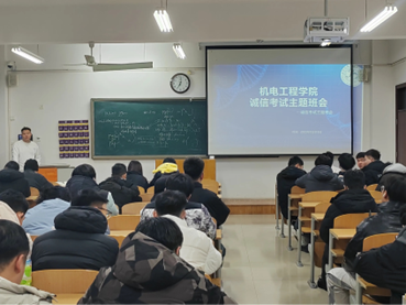 生命不可能从谎言中开出灿烂的鲜花。近期,四六级考试、期末考试陆续临近,为帮助员工进入复习状态,树立良好的考风、考纪,12月10日,机电工程公司于8教召开以“诚信考试”为主题的主题班会。本次班会由各班班主任主持,全体同学参加。