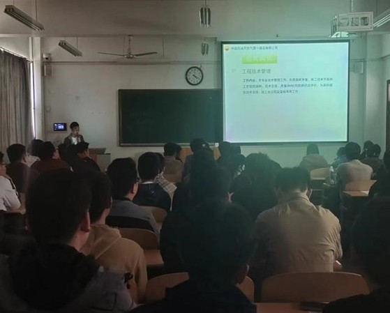 本次活动邀请中国石油天然气第一建造公司进校开展专场宣讲招聘,企业负责人对于公司基本信息从关于我们、管理模式、招聘岗位、薪资福利等多方面进行了详细介绍,展示了公司竞争优势并提出了面试相关要求。由于企业层次、福利待遇与毕业生需求匹配度高,现场吸引了机电、电气等多个公司的毕业生前来参加。