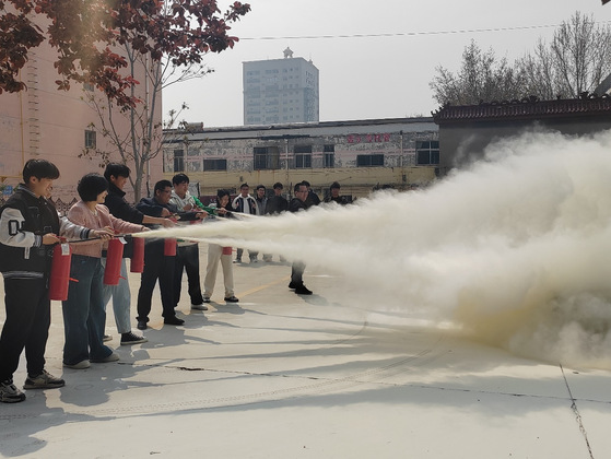 讲解结束后,杨玉杰科长组织了师生们进行逃生演练和灭火演练。演练中,师生们按照所学的知识进行逃生,实际运用了灭火器的使用方式。