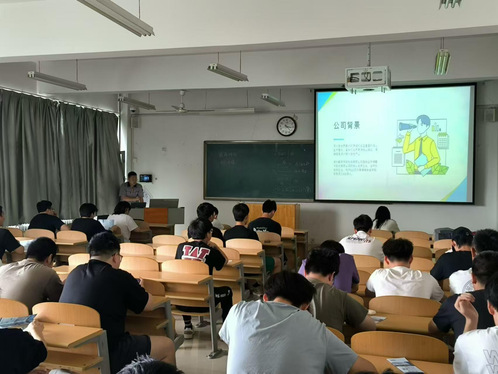 招聘会伊始,李志学播放了公司的宣传视频,让同学们对企业发展现状有了直观了解。接下来,李志学为24届师弟师妹讲授了公司的行业背景,企业文化,工作内容以及大家最关注的薪资问题。然后,两位入职该企业的毕业生深入的跟大家沟通入职后的工作生活。现场互动积极,气氛热烈,有不少同学与公司达成意愿。