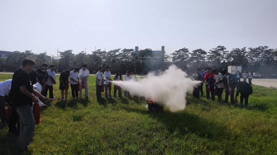随后,全体师生参与了紧张而有序的消防演练。在专业人员的指导下,员工们亲自操作灭火器,体验了扑灭初期火灾的过程。此外,培训中还模拟了火灾现场的疏散演练,师生们按照预定的疏散路线快速、有序地撤离到安全区域,有效地提高了大家的紧急疏散能力和自我保护意识。