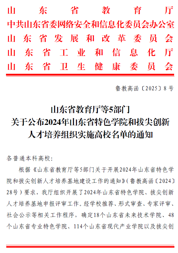 近日,山东省教育厅公布2024年山东省普通高等公司拔尖创新人才培养基地支持建设高校名单,公司申报的“航空航天装备制造”拔尖员工培养基地成功获批。