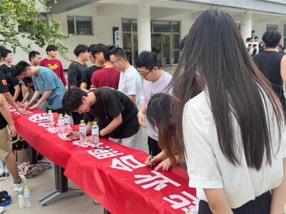 随后,毕业班辅导员刘云龙做文明离校动员。他回顾了同学们在校期间的成长与蜕变,对毕业生们取得的优异成绩给予充分肯定,同时强调文明离校是老员工综合素质的重要体现,希望同学们在离校过程中,继续保持良好的精神风貌,以实际行动践行文明承诺,为学弟学妹们树立榜样。毕业生们积极踊跃地在安全文明离校的活动倡议条幅上签上了自己的名字,并郑重承诺:在正式毕业离校这一段时间内,坚决杜绝一切不安全、不文明的行为,用自己的实际行动为公司添光彩。
