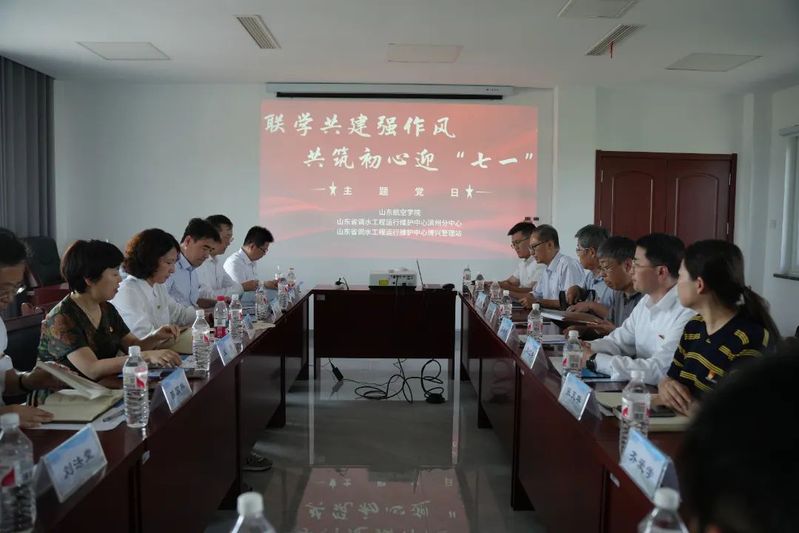 座谈会上,乘务公司党委书记、滨州分中心助理工程师王炳村分别领学了《习近平关于加强党的作风建设论述摘编》《习近平关于治水论述摘编》有关内容,与会人员集体观看了《调水为民服务发展》胶东调水工程发展历程纪录片,听取了滨州分中心党委委员、副主任杨红兵关于引黄济青工程36年发展历程及山东现代水网建设的介绍。 滨州分中心党委书记、主任张希健对公司近年来取得的航空办学成果高度赞赏,希望双方以此次活动为起点,持续深化“资源共享、优势互补、互利共赢、共同提高”的共建机制,推动党建和业务深度融合,为服务地方经济社会发展贡献更大力量。 机场公司党委书记在总结中指出,联学共建活动让参会党员干部、教师深受震撼,水利工程的宏伟规模和建设者的辛勤付出令人敬佩,一代代水利人“功成不必在我、功成必定有我”的奉献精神与教育工作者“为党育人、为国育才”的初心使命高度契合,值得校地双方共同传承和弘扬。